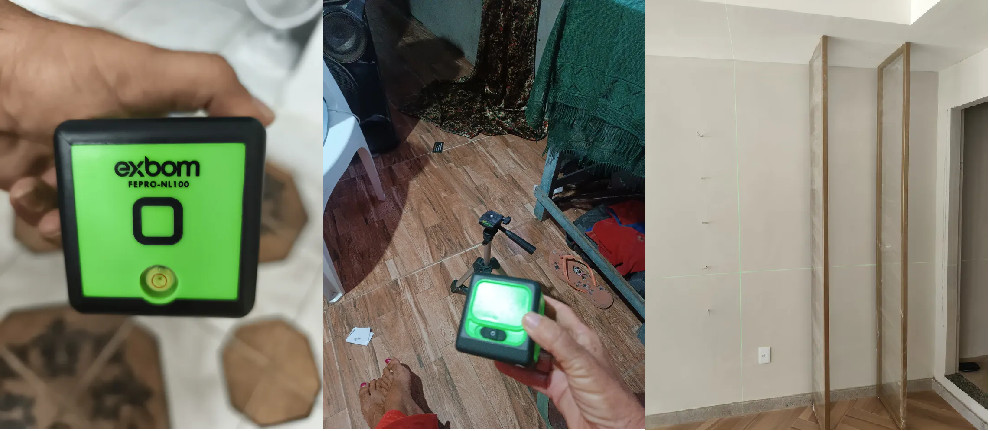 Esse tipo de nível é especialmente útil em atividades como assentamento de pisos, serviços de marmoraria, montagem de móveis, armário e painéis, além da instalação de espelhos, quadros, cortinas e luminárias. A projeção clara das linhas facilita o nivelamento horizontal e vertical, garantindo um acabamento mais profissional.